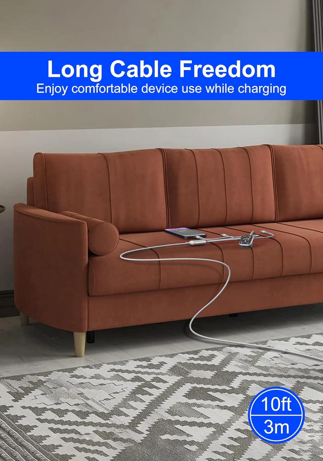 【Durable 10-Foot Cable for Travel and Outdoor Use】Crafted with tough nylon braiding and reinforced stress points, this 10-foot cable resists tangling, pulling, and wear—lasting 4x longer than standard cables. Lightweight and portable, it’s a must-have travel essentials and camping essentials accessory, easily stowing in bags for trips, RV adventures, or daily commutes while charging all your devices on the go.