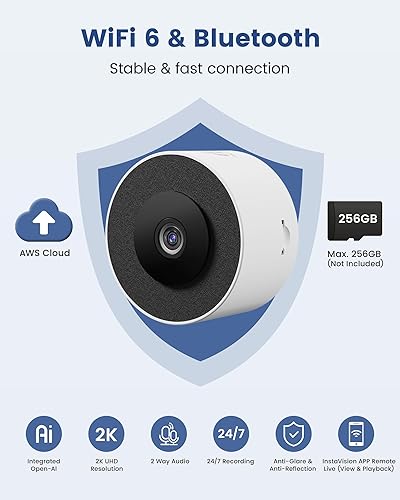 【Magnetic & Simple & Secure】 Installation in seconds with innovative magnetic sticker design, just peel-and-stick, and connect the camera, ok. Built on WiFi6 and Bluetooth connectivity for stable, buffer-Free streaming. Our window cameras for home security are designed for windows, cupboards, fish tanks, glass walls and more glass scenarios