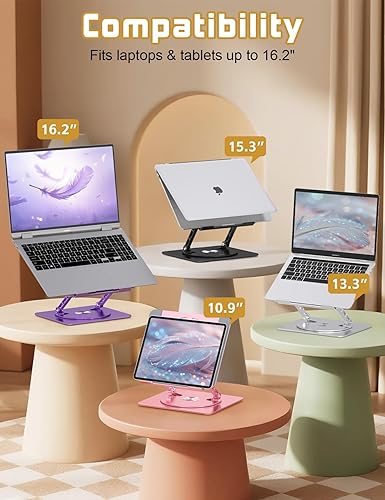 【360° Full Rotation for Easy Collaboration】Unlike fixed stands, the Axbima portable laptop holder rotates smoothly for instant screen sharing—no need to lift or move your laptop. Perfect for meetings, teamwork, and dual-device setups, it keeps your screen at the right angle whether you’re presenting in the office or working comfortably from home