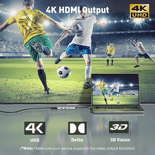 【Stunning 4K Visuals】With its HDMI port, this hub delivers media display at resolutions up to 4K 30Hz — every frame stays rich in detail and ultra-vivid. Reminder: For seamless video output, ensure the USB-C port of your host device has video transmission capability.