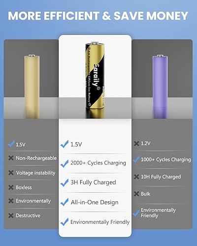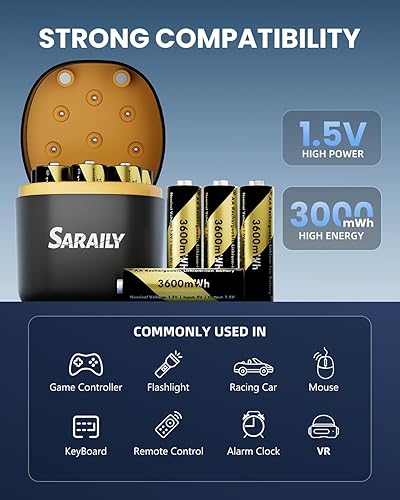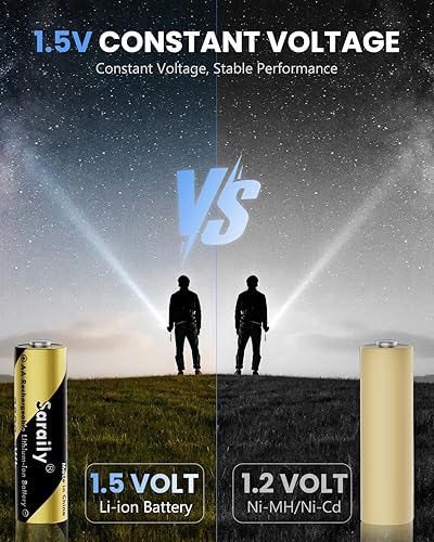 【3600mWh High-Capacity & 1.5V Steady Output】Saraily 8 pack rechargeable lithium aa batteries has 3600mWh, higher energy density which allows for a high number of charge/discharge cycles and a long lifespan.Constant output of 1.5V for the entire process until the power is completely depleted, keeping your device in top condition at all times.