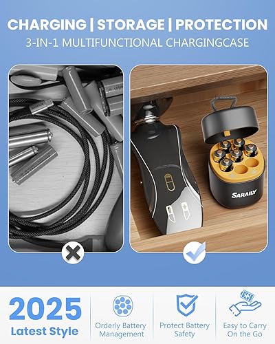 【2-in-1 Battery Charger and Storage Case】Our 2-in-1 lithium-ion battery charger combines storage and charging functions to keep your batteries organized. No more batteries scattered in a drawer, hard to find when you need them. Perfect for home and travel, it saves space and is highly portable.