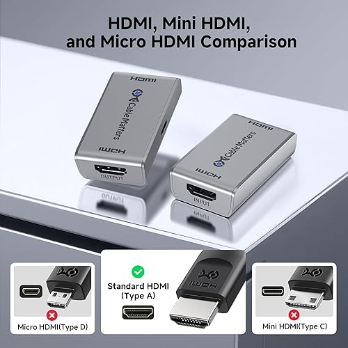 High-Performance HDMI Signal Booster: This active HDMI cable repeater supports 8K@60Hz, 4K@240Hz, and 4K@120Hz at up to 30ft; extends up to 50ft for 4K@60Hz and 75ft for 1080p Full HD. Supports CEC, eARC, HDR, and HDCP 2.3 for seamless performance.