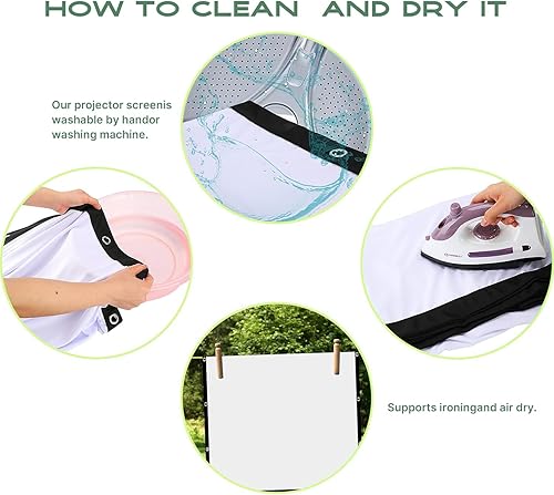 Movie Screen Fabric: Crafted from premium white, soft-touch material, this thickened projector screen is smooth, crease-free, and completely opaque—enhancing color brightness and vibrancy. Designed for convenience, it is made from machine-washable and hand-washable materials, allowing easy maintenance. Each screen undergoes strict quality control to ensure superior performance, making it an ideal choice for outdoor projection.