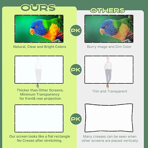 Design: The Unique Black Frame Design ,160° viewing angle, 16:9 projector screens format, 100" Diagonal to Provide a 89"×50"Viewing area.Suitable for movie projector screen for outdoor use