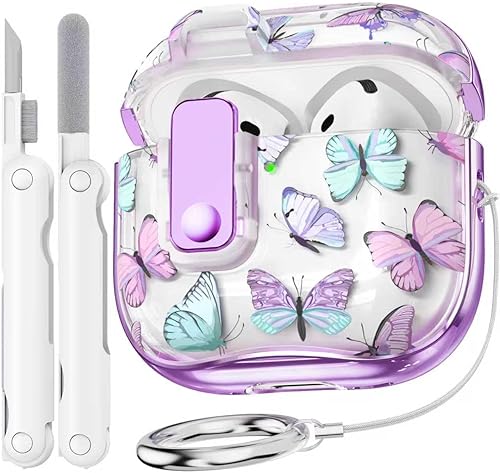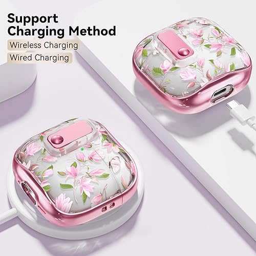 AirPod 4 Case with Lock - Purple Butterfly Cover & Keychain(D-Pink Peach Flower)