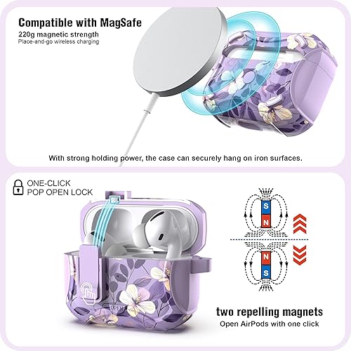 【Important features】1, Stable phone stand function, 2. "One-click open" automatic magnetic lock, 3. Wrap-around patterns, 4. Charging light is visible, 5. Compatible with Magsafe charger.