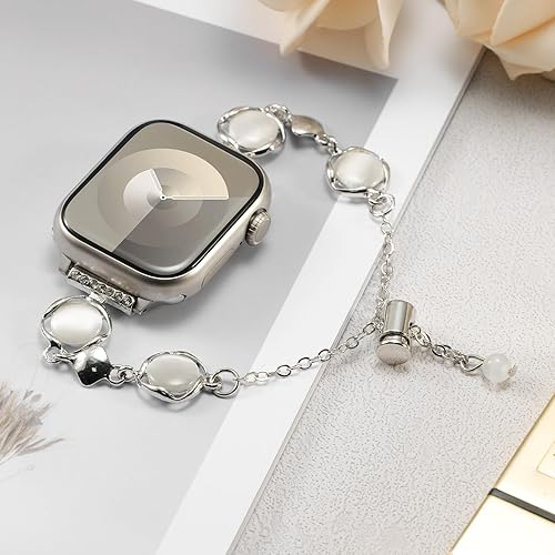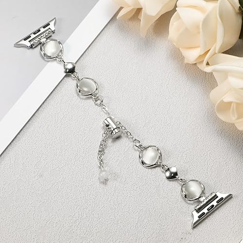 Apple Watch Band for Women Silver | 38-42mm Jewelry Strap(Silver,Gemstone)