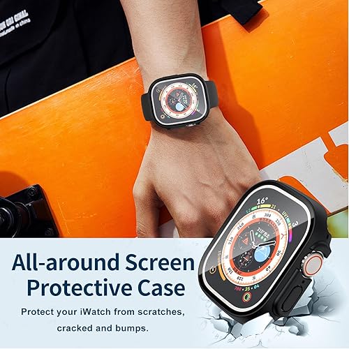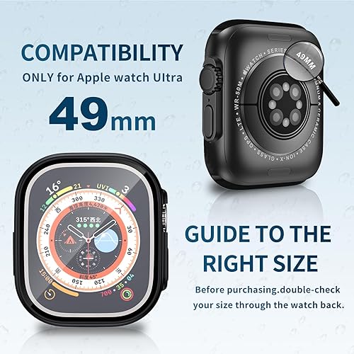 【Compatible Model】Tempered Glass Screen Protector Case for Apple Watch Ultra/Ultra 2 & 3 49mm.Please verify the size and model on the back of the watch before purchasing.