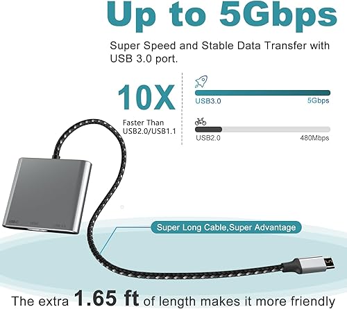 【High Speed Transfer】 The usb type c 3.1 hub supports high speed data transfer up to 5Gbps (5120Mbps),10x faster than USB 2.0 (480 Mbps). Compatible for USB flash disk, camera, removable hard drive, mouse, keyboard or other USB A 2.0/USB A 3.0 devices