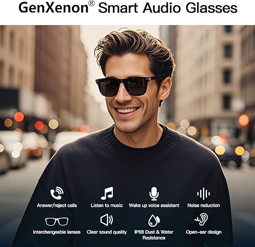 【Stylish & Lightweight Design】 Portable smart glasses weigh only 30 grams and the TR90 flexible frame makes them as light as ordinary glasses. GenXenon M01 smart glasses are Blending contemporary Euro-American minimalism with advanced tech, our sleek smart glasses offer clean-lined sophistication., comfortable to wear, perfect for leisure and sports wear.