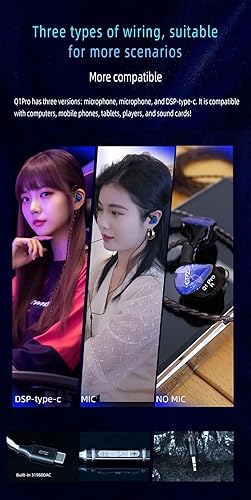 【Multiple Versions for Every Scenario】 Choose the perfect version for your needs: a standard NO MIC version for pure music enjoyment, a MIC version with an in-line microphone for calls and gaming, or a DSP-Type-C version with a built-in DAC for a direct digital connection to phones and computers. Your purchase includes the Q1 PRO earphones, the 4N single crystal copper cable.