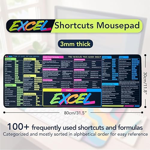 LARGE SIZE EXCEL DESK MAT: This Excel cheat sheet desk pad is around 31.5"x11.8" and 3mm thick, fits most desks well while providing great functionalities. With precisedly stitched edge, this desk pad will last for a long time