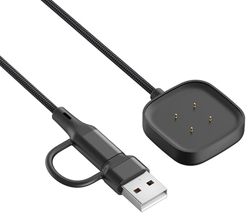 Fitbit Versa 4/3 Charger Cable - Nylon Braided 2-in-1 USB-C