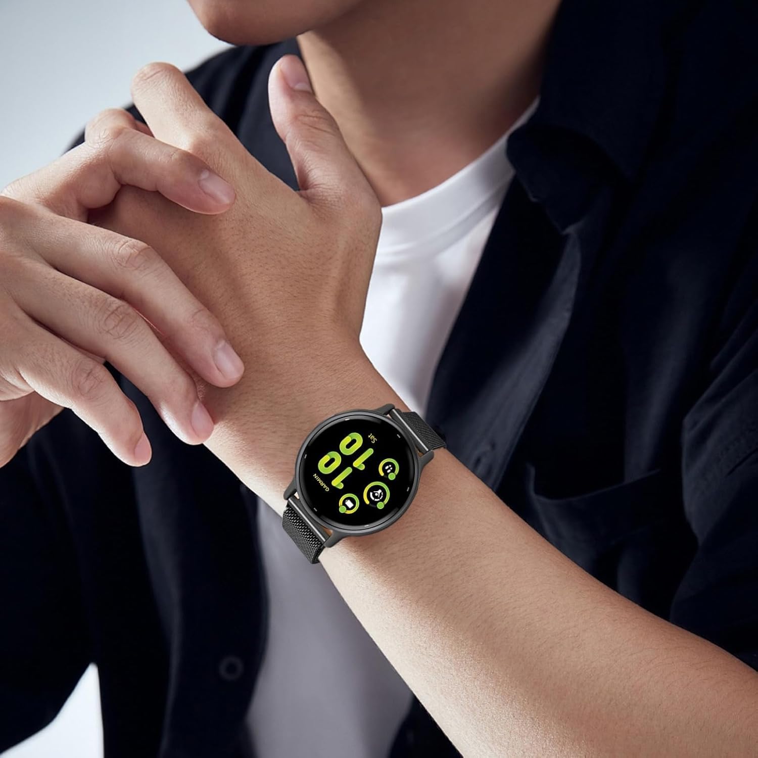 【Magnetic Clasp Design】The vivoactive 5 watch band adopts a magnetic clasp design. The clasp design makes adjustment more convenient and the size can be freely adjusted according to one's wrist. Suitable for wrist size 5.5" -8.7" (140mm-220mm).