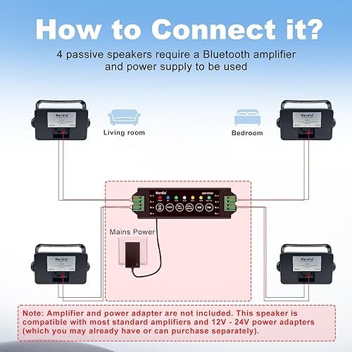 WHAT'S IN THE BOX & HERDIO SERVICE : The package includes four passive speakers, four speaker wires (2.5m) and one owner's manual—everything you need to start using the system immediately.Herdio also provides lifetime support through our professional customer service team, ready to assist with both technical and basic questions whenever you need help.