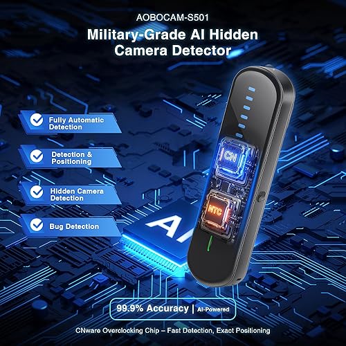 Military-Grade Precision Detection with AI Enhancement – 99.9% Accuracy, The AOBOCAM S501 hidden camera detector leverages cutting-edge AI algorithms and multi-band RF scanning technology to identify ALL covert surveillance threats—including ultra-compact 4K cameras, GPS trackers, and wireless bugs. Engineered for superior performance, the S501 features advanced false-alarm reduction technology, delivering 20% greater detection efficacy than other brand models. Ensure complete privacy and peace of mind by confirming whether you're being monitored, recorded, or tracked.