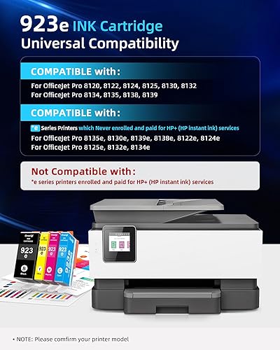 Printer Compatibility: for 923xl ink cartridges works for *e series printers which never enrolled and paid for HP+ (Hp instant ink) services: Officejet Pro 8135e,8130e,8139e,8138e,8122e,8124e, Officejet Pro 8125e,8132e,8134e Printers