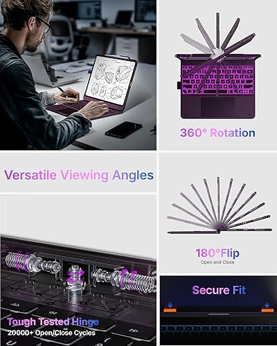 360° Rotatable Design: With its 360° rotatable design, this iPad Air 13 inch keyboard case lets you easily switch between landscape and portrait modes, offering 7 versatile use modes. Whether you’re attending a meeting, writing reports, watching movies, or handling daily tasks.