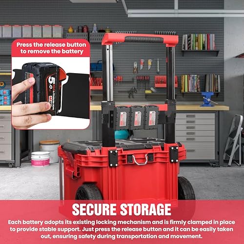 Safety Storage: Each battery clicks securely into place using its existing locking mechanism, providing a solid hold. Removal is just as effortless with a single press of the release button, ensuring safety during transportation and while on the move