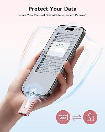 【Portable, Stylish, and Secure】Compact and lightweight, this encrypted iPhone flash drive is available in pink and blue. Use the app to set a password and keep your personal files safe, which make the photo stick offering added security for your important data.