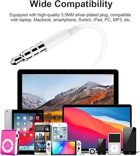 【Wide Compatibility & Excellent Durability】 These earphones have a 3.5mm internationally certified plug with 24K gold plating, offering rust resistance and Hi-Fi sound without Bluetooth. They are compatible with various devices, including iPhones, iPads, Android smartphones, gaming consoles, and MP3/MP4 players. Made from high-quality TPE, they have passed thousands of bending tests and are pet-resistant. Featuring wear-resistant copper and aluminum foil, they are tangle-free, durable, and strong, ensuring long-lasting use. They are also waterproof, suitable for light rain or sweat.