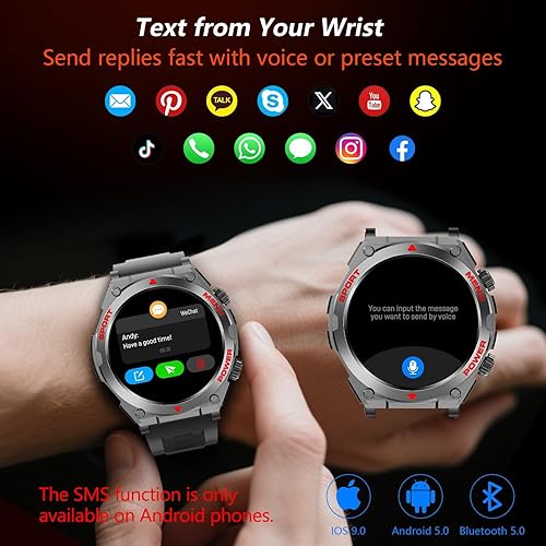 Bluetooth Calls & SMS Replies & Message Notifications & AI Voice Assistant: Smart watches for men built-in premium mic/speaker for calls, voice-to-text replies, and social alerts (Facebook/WhatsApp/Instagram,ect.). AI assistant controls music, checks weather, makes calls, and more - all hands-free.