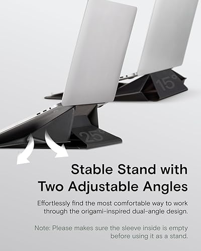 Two Angles Laptop Sleeve Stand: Instantly convert this sleek Laptop Sleeve into a sturdy Laptop Stand. Features dual-angle adjustment (15° for typing; 25° for viewing) to elevate your screen, reducing neck/wrist strain from poor posture. More than a protective Laptop Bag, this ergonomic Computer Bag works anywhere – transforming your carry sleeve into a pain-relieving workstation.