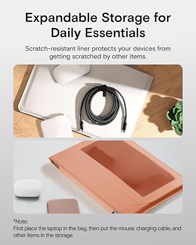 Expandable & Organized: This Laptop Carry Sleeve features a dedicated compartment to isolate your device from accessories, preventing scratches. The Computer Sleeve's expandable storage effortlessly holds mice, keys, chargers, and cables – no more space anxiety. Your Laptop Bag grows with your needs while keeping tech secure
