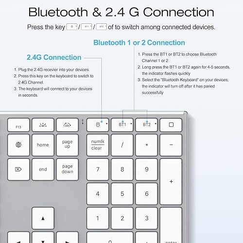 BT1 & BT2 Bluetooth Channel Switch Up to 2 Devices: Can connect two different devices simultaneously through dual Bluetooth channels, press the key BT1 or BT2 to easily switch to the connected device