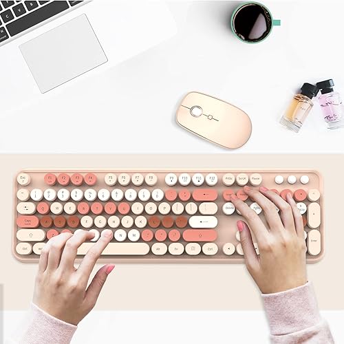 ❤【Vibrant Retro Design & Ergonomic Comfort】Add playful charm to your workspace with Euphoricca's **cute wireless keyboard and mouse combo** featuring candy-colored retro keycaps and a matching mouse. The keyboard is designed with a tilt angle that promotes a comfortable typing position, while circular "typewriter-style" keys deliver satisfying tactile feedback. Perfect for office professionals craving both style and comfort in their daily setup.