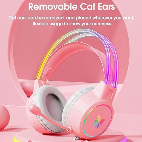 RGB Gaming Headset with Noise Cancelling Mic for PC(Pink)