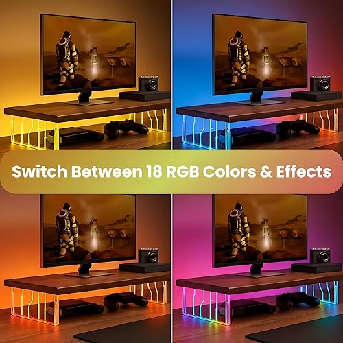 [RGB Monitor Stand – Customizable Lighting at Your Fingertips] Easily switch between lighting effects using the built-in control button. Choose from 18 vibrant color modes to match your mood or game theme, making this rgb monitor stand or monitor stand riser rgb a centerpiece of your setup.