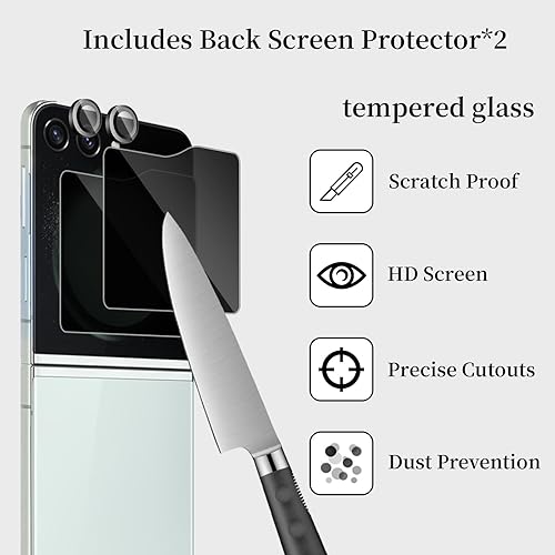 【Package Include】2 Pack Internal Anti-Spy Film + 2 Pack Outer Privacy Glass Screen Protector + 2 PCS Metal Camera Lens Protector are specifically designed for Samsung Galaxy Z Flip 7 5G.