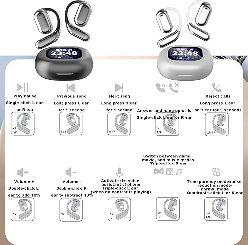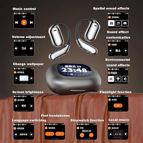 Touch Screen Control: Effortlessly manage your audio experience with the intelligent touch screen feature on these open Bluetooth earphones, allowing you to play, pause, and skip tracks with ease