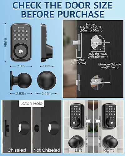 [DIY Installation – Quick Setup, No Extra Tools Needed] Install this keyless entry door lock in under 15 minutes with just a screwdriver. Fits most standard U.S. doors and supports both left- and right-hand configurations.