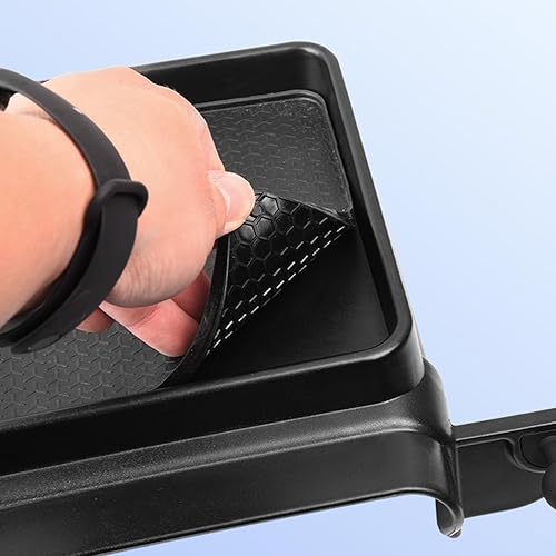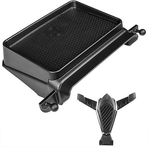 FUNCTION :Perfect fit for all smart phones with the size from 4.7 to 6.2 inches like iPhone 7/8/X. With adjustable clamp arms to hold the phone perfectly and securely. With storage box,make you ccenter console clean and tidy.