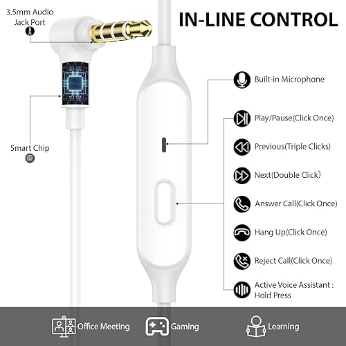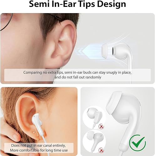 Semi In-Ear Wired Earbuds: The Eartips is Shortened to fit the Ear Canal Perfectly Without Causing Any Pain or Pressure, Yet Still Can Greatly Isolates Outside Noise to Ensure Clear Sound, Quality Calling and Stereo HiFi Music Streaming, Come with Cable Fixer to Avoid Wire Swinging