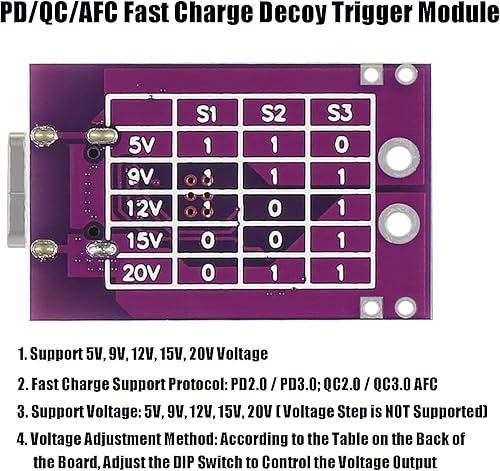 Support voltage: 5V, 9V, 12V, 15V, 20V (voltage step is not supported)