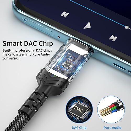 More Durability: Upgraded connector usbc to 3.5 adapter contacts greatly reduce the phenomenon of poor contact, stretch resistant, long-lasting; flexible TPE coating + braided nylon jacket got through 5000+ bend bears test which is durable for daily usage