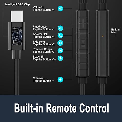 【High-Quality Noise Reduction Sound】The USB C Earphones for iPhone uses 100% copper core to provide lossless digital sound quality, supports 48KHz and 24-bit audio output, These wired headphones feature a metal composite diaphragm and built-in high-performance speakers that expand the frequency range and reduce distortion. ensuring sound transmission stability and fidelity, allowing you to better immerse yourself in the world of music during exercise.