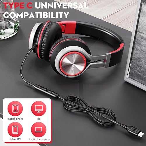 【Noise Isolation】The USB-C headphones over ear can enhance your listening experience, making them the perfect computer, phone, laptop, tablet & mobile headphone for enjoying your media while commuting, exercising, or working - anytime. Whether you're working in a noisy office or commuting on a crowded train, our wired headphones with premium noise isolation can help you create a peaceful listening environment.