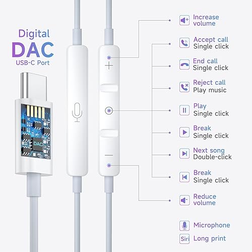 USB C headphones for iPhone 16/16 Plus/16 Pro/16 Pro Max,15/15 Plus/15 Pro/15 Pro Max, for iPad Pro(M4), iPad 10,12.9'' iPad Pro 6th/5th/4th/3rd gen, 11'' iPad Pro 4th/3rd/2nd gen, iPad Air M2/5th/4th, iPad mini 6th, Macbook Air Pro; for Samsung Galaxy S25 Ultra/S25+/S25/S24 Ultra/S24+/S24,S23 FE/S23 Ultra/S23+/S23,S22 S21 S20 Ultra FE,Note 20 Ultra/20,A55/A54/A53,Tablet A9+, Z Flip/Fold 5/4/3/2; for Google Pixel 9 8 8a 8 Pro 7 7a 7 Pro 6 Pro 6a 6 5 4 4XL 3XL; for OnePlus 10T 10 Pro 9 8 Pro and more USB-C device without 3.5mm jack