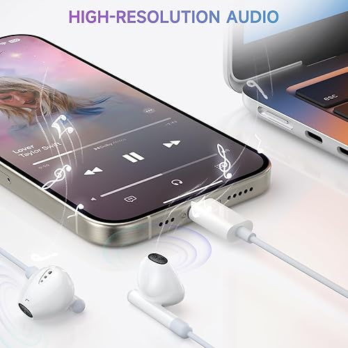 【HD Mic & Volume Control】The iPhone 16 Pro Max headphones' built-in HD microphone and in-line remote control allow you to easily switch between music and calls, fully meeting your expectations for playing/pausing songs, volume control, switching songs, answering/rejecting calls.