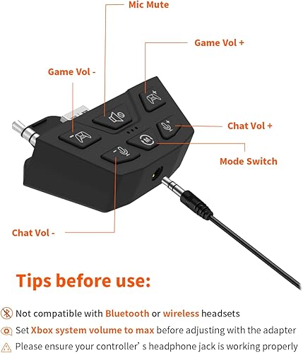 Versatile Audio Control: Adjust game/chat balance; control volume and mic mute directly without changing settings on the Xbox system or dropping the controller; Set system volume to max before using the adapter for best results